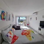 Eine komplette Küche mit einem Wasserkocher, einem Kühlschrank und Küchenutensilien wird Ihren Aufenthalt noch komfortabel machen. Die Gäste dieses Apartments können den Komfort von Ausstattung zur Kaffee- & Teezubereitung genießen. Zu den Restaurants Le Tropics und El Dorado Grill mit sind es ca. 5 Gehminuten. Das Apartment ist ziemlich nah an der Bushaltestelle Les Nautiles. Dieses Apartment bietet Zugang zu einem Swimmingpool, einem Tauchbecken und einem Golfplatz sowie einer Terrasse mit Blick auf den Pool. Die Unterkunft bietet außerdem ein Tauchbecken zur Entspannung und Erfrischung. Windsurfen, Tauchen und Wandern helfen den Gästen, einen aktiven Lebensstil zu pflegen.